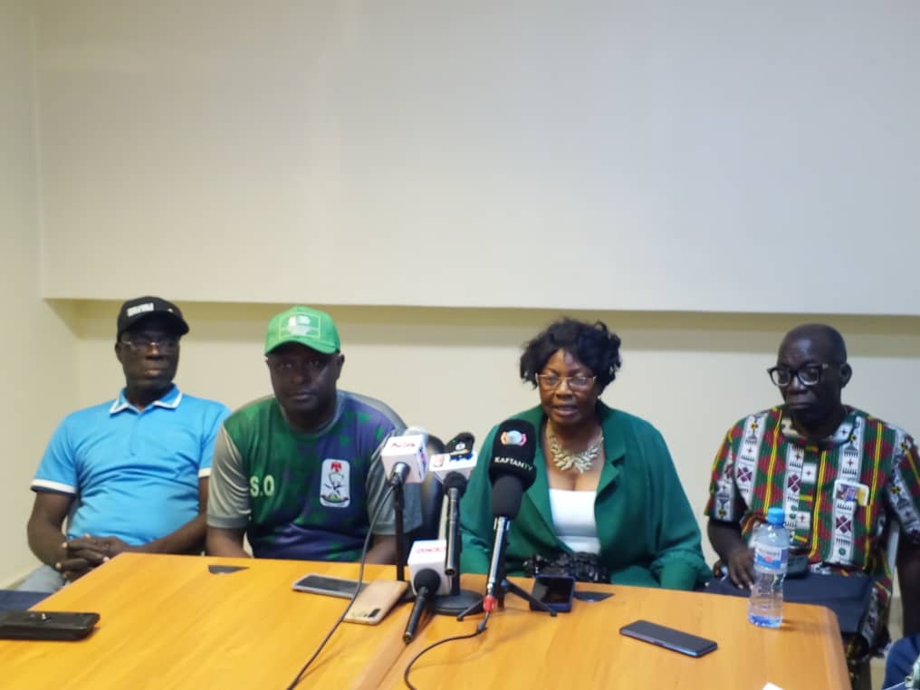 Dignitaries at the press conference included Professor Ebenezer Morakinyo (NVBF Board Member), Martin Melandi (Technical Director), Prince Tunde Omisore (Board Member), and Wosilat Abbas (Secretary-General).
