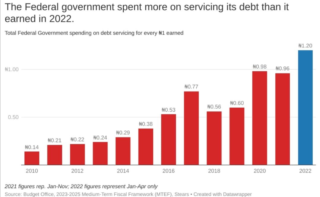 Debt Servicing: Nigeria Works to Pay Lenders, Not Citizens. Today, 74.6% of Nigeria’s revenue goes to servicing debt, according to the Debt Management Office (DMO). That means only 25 kobo of every ₦1 earned by the government is left for development.