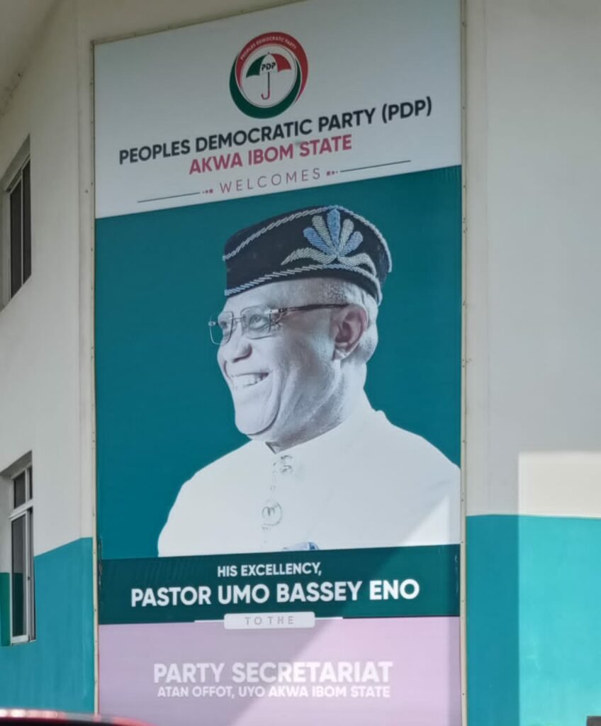 It is factual, not imaginary, that almost six months after Akwa Ibom State Governor, Pastor Umo Eno officially defected to the All Progressives Congress (APC), the governor’s pictures are still on display at the PDP secretariat in Atan Offot, Uyo Local Government Area of the State.