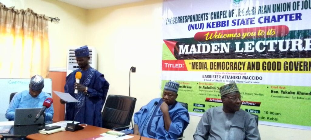 The Correspondents Chapel of the Nigeria Union of Journalists (NUJ), Kebbi State, in collaboration with the Office of the Special Adviser on Public Enlightenment, Ibrahim Abubakar Jombali, has organised a One-Day Public Lecture On Media, Good Governance And Democracy, aimed at articulating the successes of the present administration in the state.