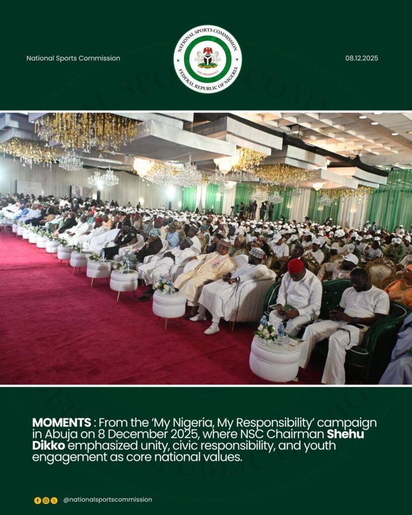 The National Sports Commission @Shehu Dikko joined leaders, youths, creatives, and civic advocates at the My Nigeria, My Responsibility Campaign unveiling held at the state house, Presidential Villa, on the 8th December, 2025. The event is a national movement championed by the Office of the Senior Special Assistant to the President on Citizenship & Leadership, led by Hon. Nasir Bala Aminu Ja’oji @Nasir Jaoji SSA Youth Engagement 25 Villa