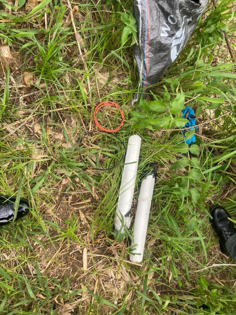 A coordinated search and sweep operation led to the discovery of two (2) 90mm high explosive rounds; forty-five centimeters (45cm) length of burning fuse; one (1) pair of pincers; one (1) flat screw-driver; two (2) pieces of 12mm iron chisels and one (1) six centimeters (6cm) conduit iron pipe.