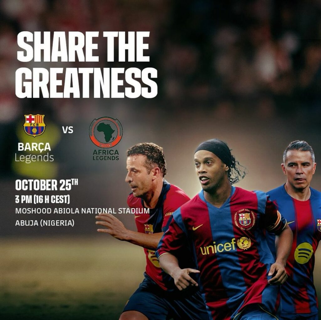 With exactly 25 days left until kick-off, anticipation is building for one of Africa’s most eagerly awaited football experiences of 2025: a legends showdown between African Legends led by Jay-Jay Okocha and Barca legends led by Ronaldinho, set for October 25 at the Moshood Abiola National Stadium in Abuja.