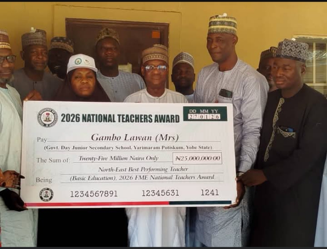 A Yobe State teacher, Mrs Gambo Lawan, has brought pride to the state after emerging as the Best Teacher in the North-East at the 2026 Federal Ministry of Education National Teachers Award Ceremony held at the Presidential Villa, Abuja.